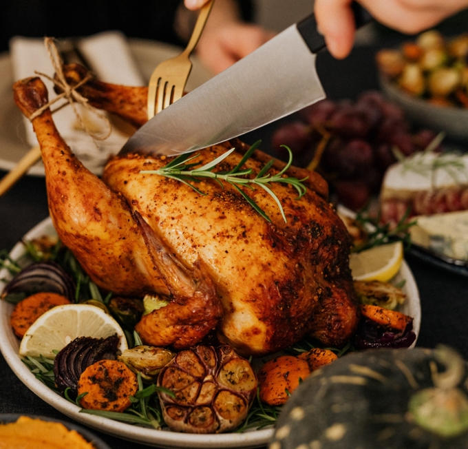 Knusprig gebratene Gans und Ente – traditionell gefüllt mit aromatischen Äpfeln, Zwiebeln, Rosmarin, Thymian und Beifuß. Schonend bei niedriger Temperatur gegart für besonders zartes Fleisch, mit einer fein abgeschmeckten, hausgemachten Soße