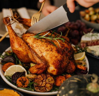 Knusprig gebratene Gans und Ente – traditionell gefüllt mit aromatischen Äpfeln, Zwiebeln, Rosmarin, Thymian und Beifuß. Schonend bei niedriger Temperatur gegart für besonders zartes Fleisch, mit einer fein abgeschmeckten, hausgemachten Soße